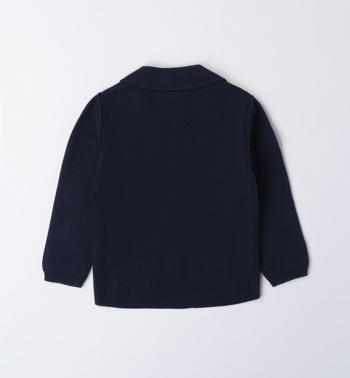 iDO delightful boy's cardigan in 100% cotton tricot with a special finish. Front opening with buttons and small front pockets