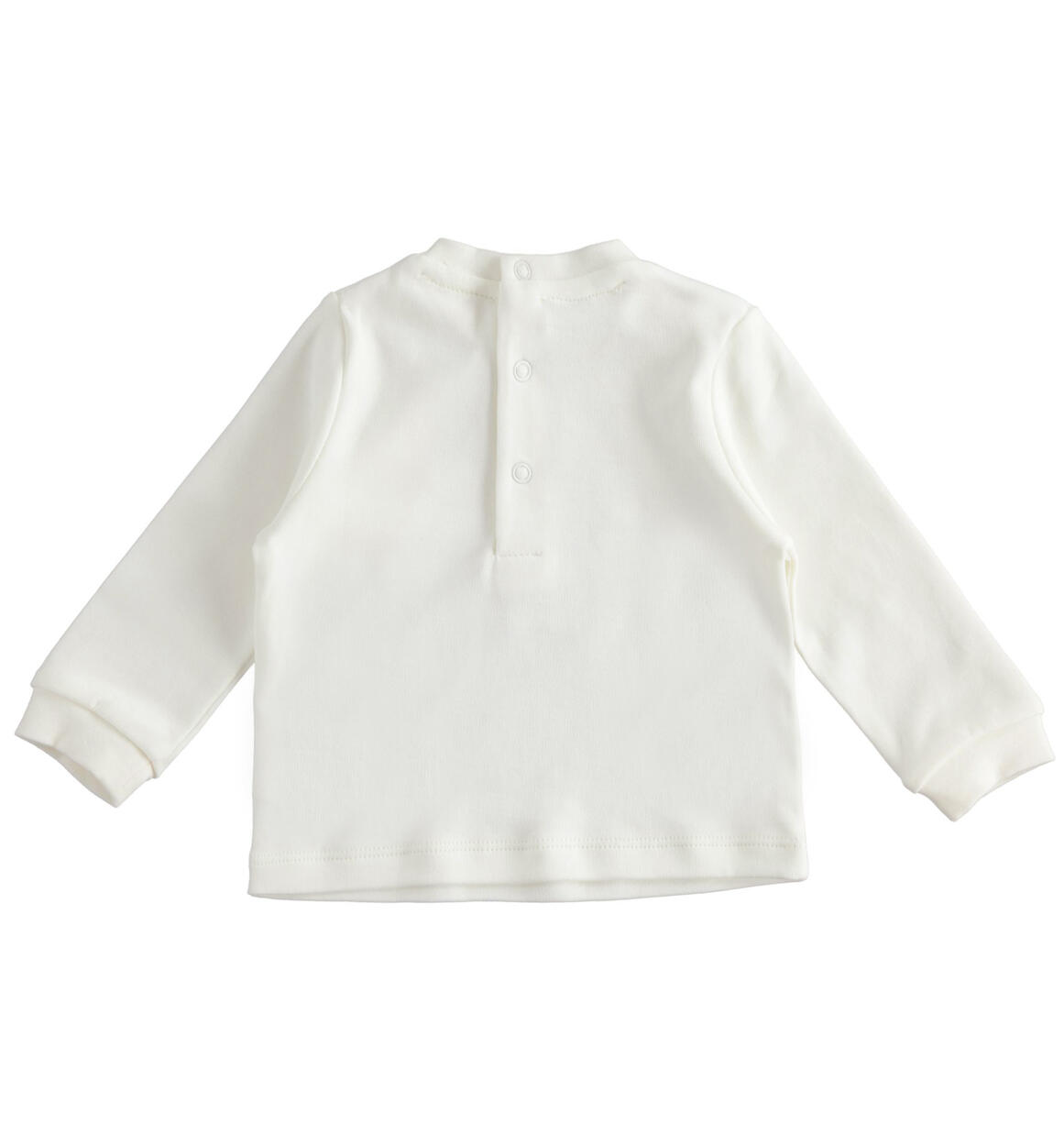 Minibanda boy's 100% cotton interlock t-shirt with print and sweet animal embroidery appliques. Snap buttons on the back.