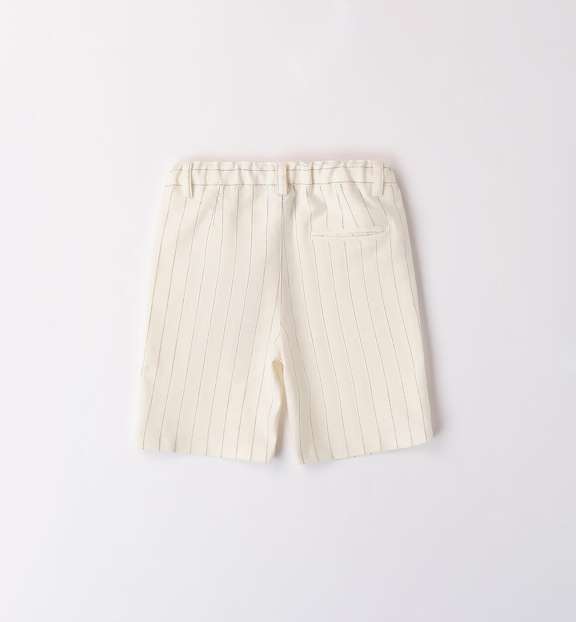 Sarabanda boys' shorts in stretch linen and viscose. This model features a zip and button opening, chino pockets and is knee-length. Regular fit. The shorts come in a striped pattern. The waist size is adjustable thanks to the internal buttonhole elastic. This article is part of the Sarabanda Occasion Wear Fashion collection