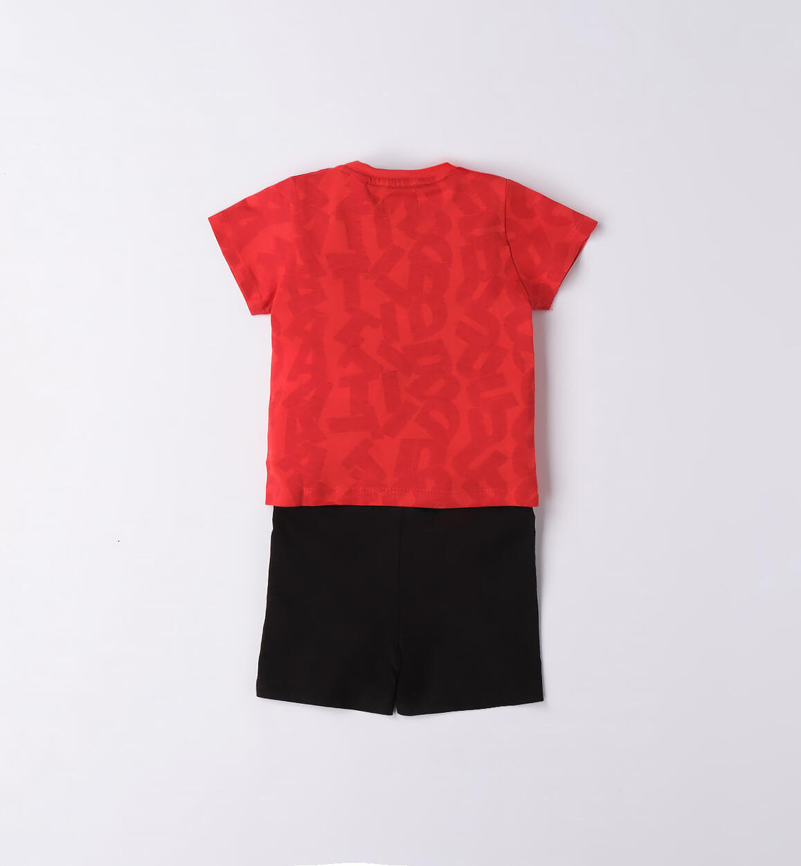Ducati boys' summer set made from 100% cotton jersey. T-shirt with an all-over Ducati print, fastened on the shoulder with press studs. Shorts with an elasticated drawstring waist