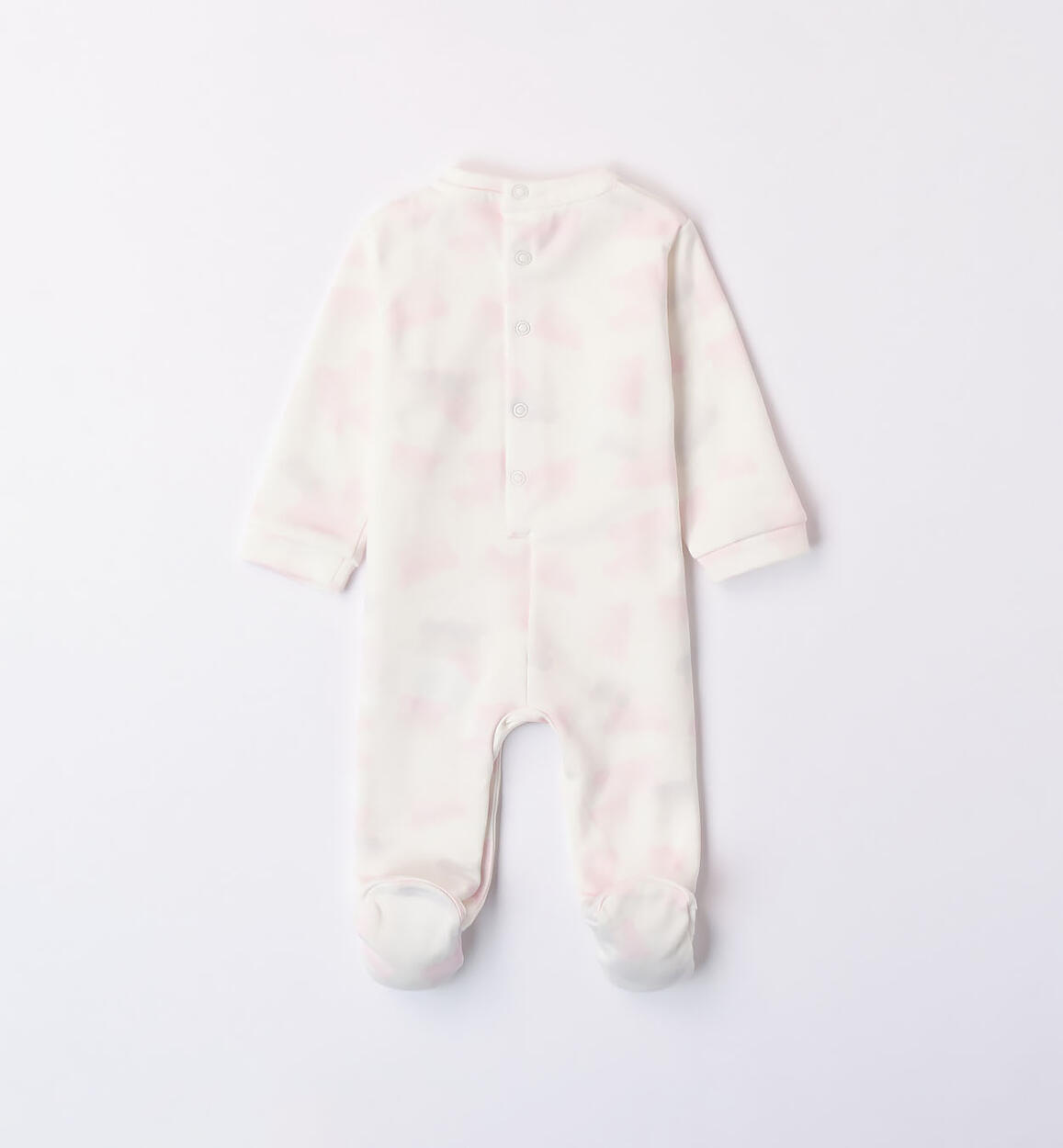 Minibanda sleepsuit with feet for babies in 100% organic cotton interlock. All-over teddy bear print. Opening at the back and inner thighs with press-studs for easy fitting