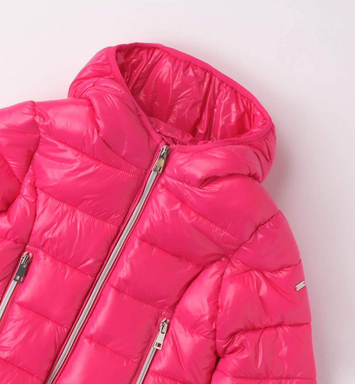 iDO girls' 200-gram down jacket made from nylon and padded with wadding. The down jacket is fastened with a zip and finished with a hood and zipped pockets