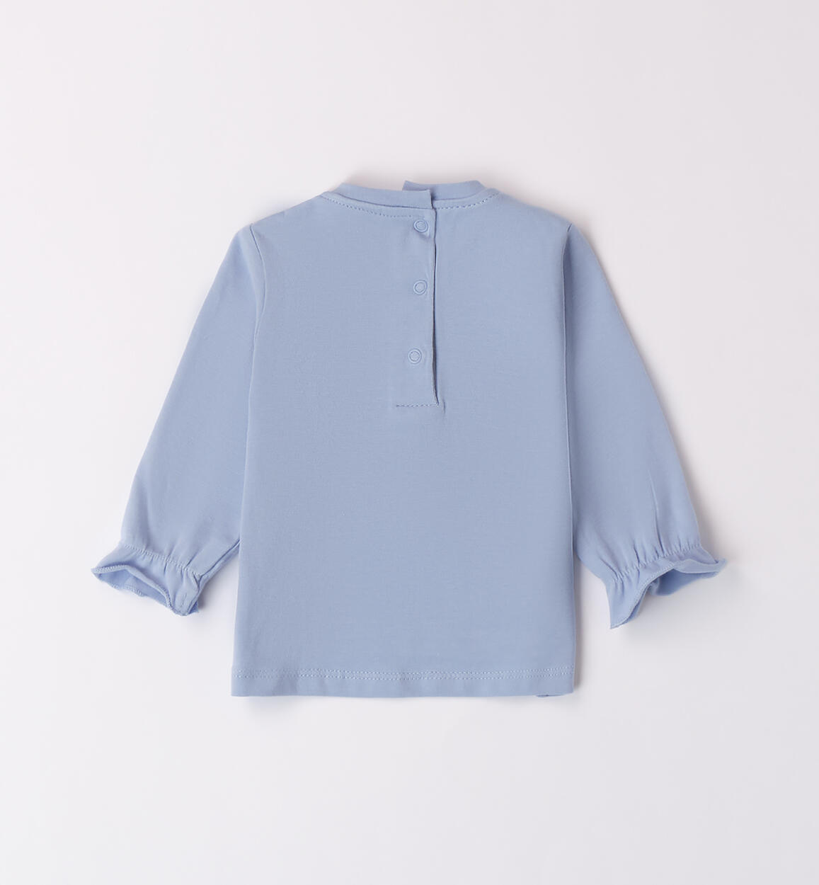 Minibanda crew neck top for baby girls aged 1-24 months in stretch cotton jersey. The model opens at the back with press studs to facilitate changing and dressing. The top has ruffled cuffs and embroidery on the front. Discover the entire selection of Minibanda jumpers for girls!