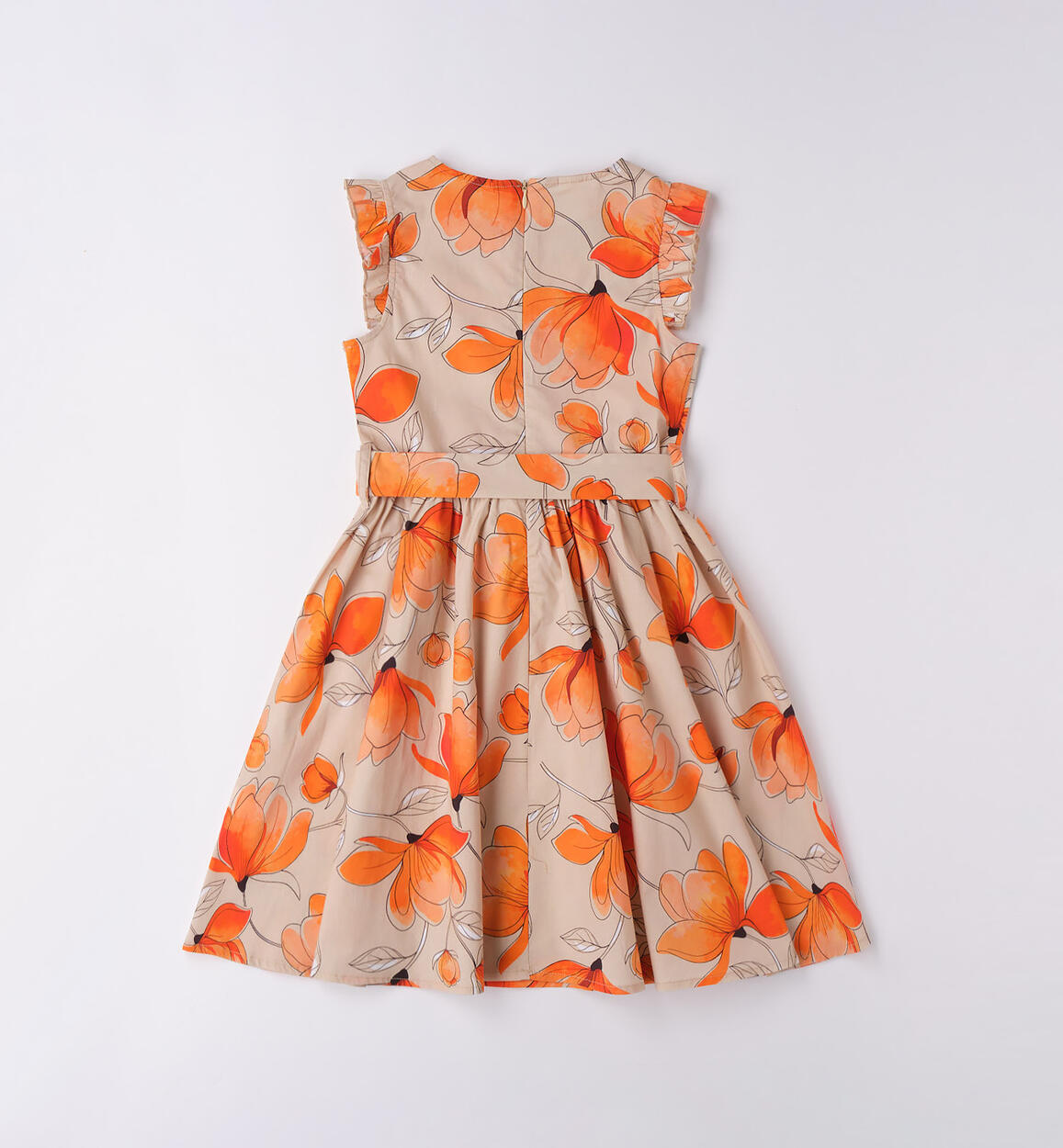 iDO dress for girls in stretch cotton poplin with band on the waist, slightly pleated sleeves. Back opening with invisible zip, knee-length