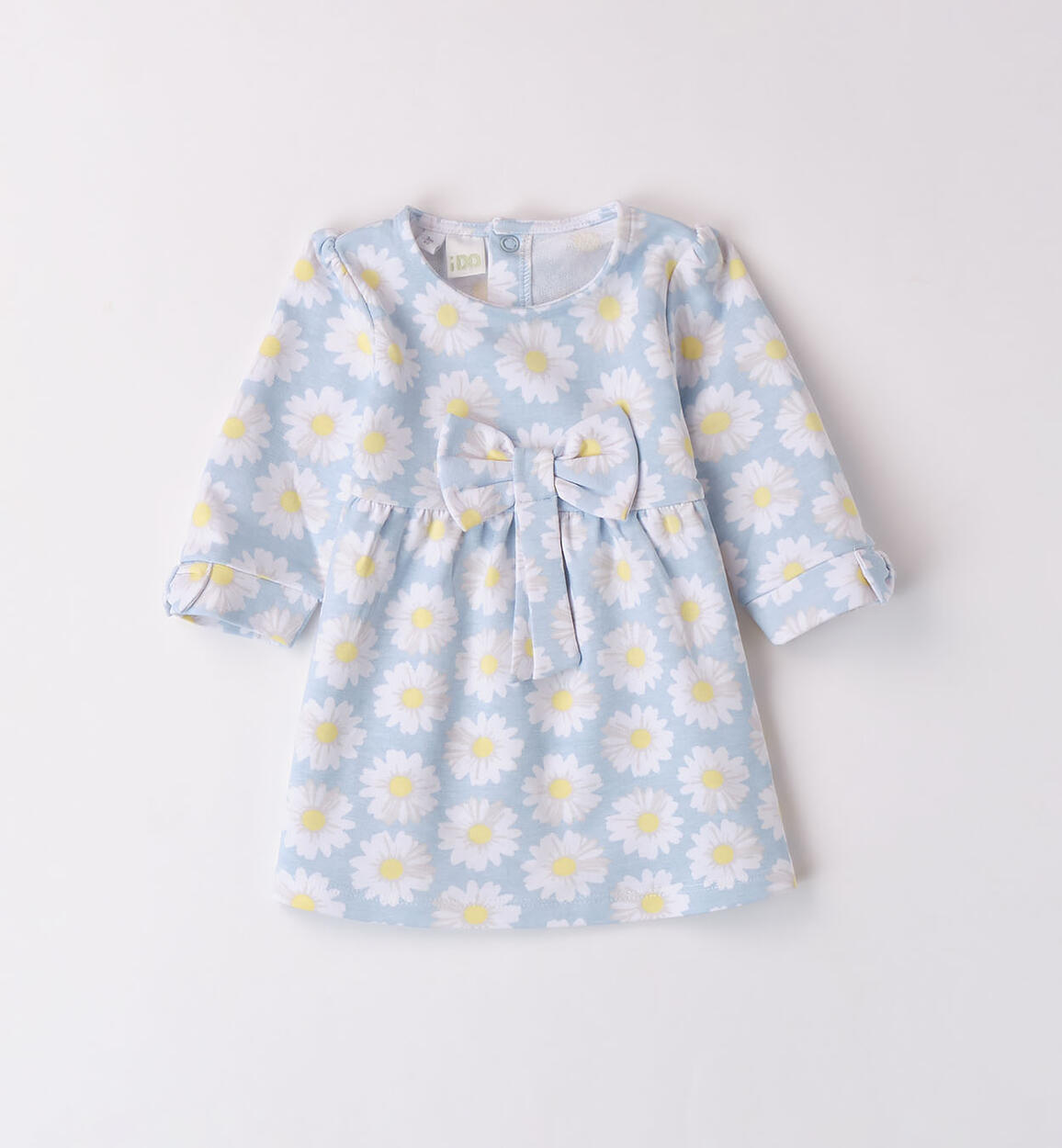 Abito cerimonia per neonata iDO realizzato felpa stretch di cotone. Il modello è dotato di apertura posteriore con bottoni a pressione per agevolare il cambio e la vestizione. L'abito ha maniche lunghe e lunghezza è sopra al ginocchio. Il modello è realizzato in fantasia tinta allover di margherite. Scopri tutta la selezione di Abiti neonata iDOMini!