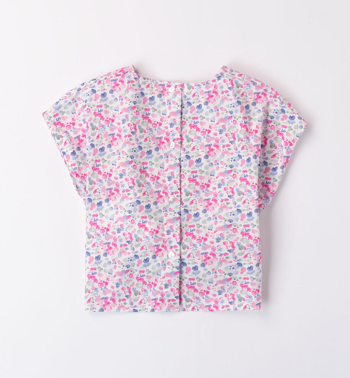 Camicia a maniche corte per ragazza realizzata in popeline 100% cotone con stampa all over colorata e nodo davanti. Apertura sulla schiena con bottoni. Scopri tutta la selezione di Camicie ragazza iDO sul sito!