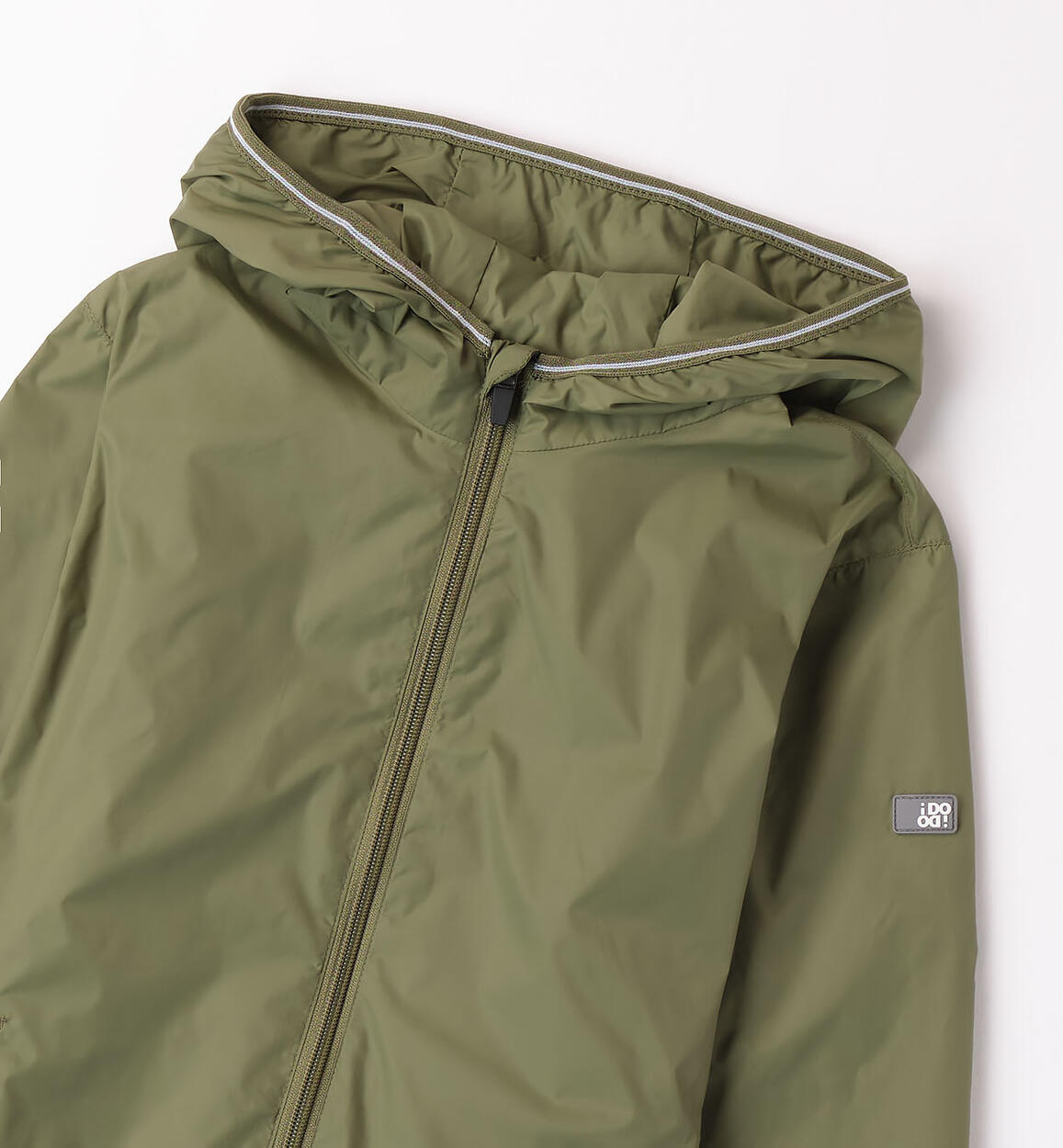 Giubbotto iDO per ragazzo realizzato in nylon con fodera in jersey di cotone. Modello antivento con cappuccio e apertura con zip