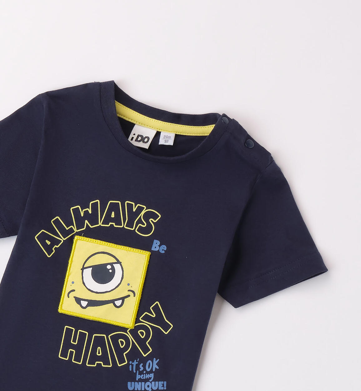 T-shirt iDO per bambino realizzata in jersey 100% cotone con grafica monster e divertente applicazione sul fronte. Apertura con bottoni a pressione sulla spalla fino alla taglia 3 anni. Scopri tutta la selezione di T-shirt iDO sul sito!