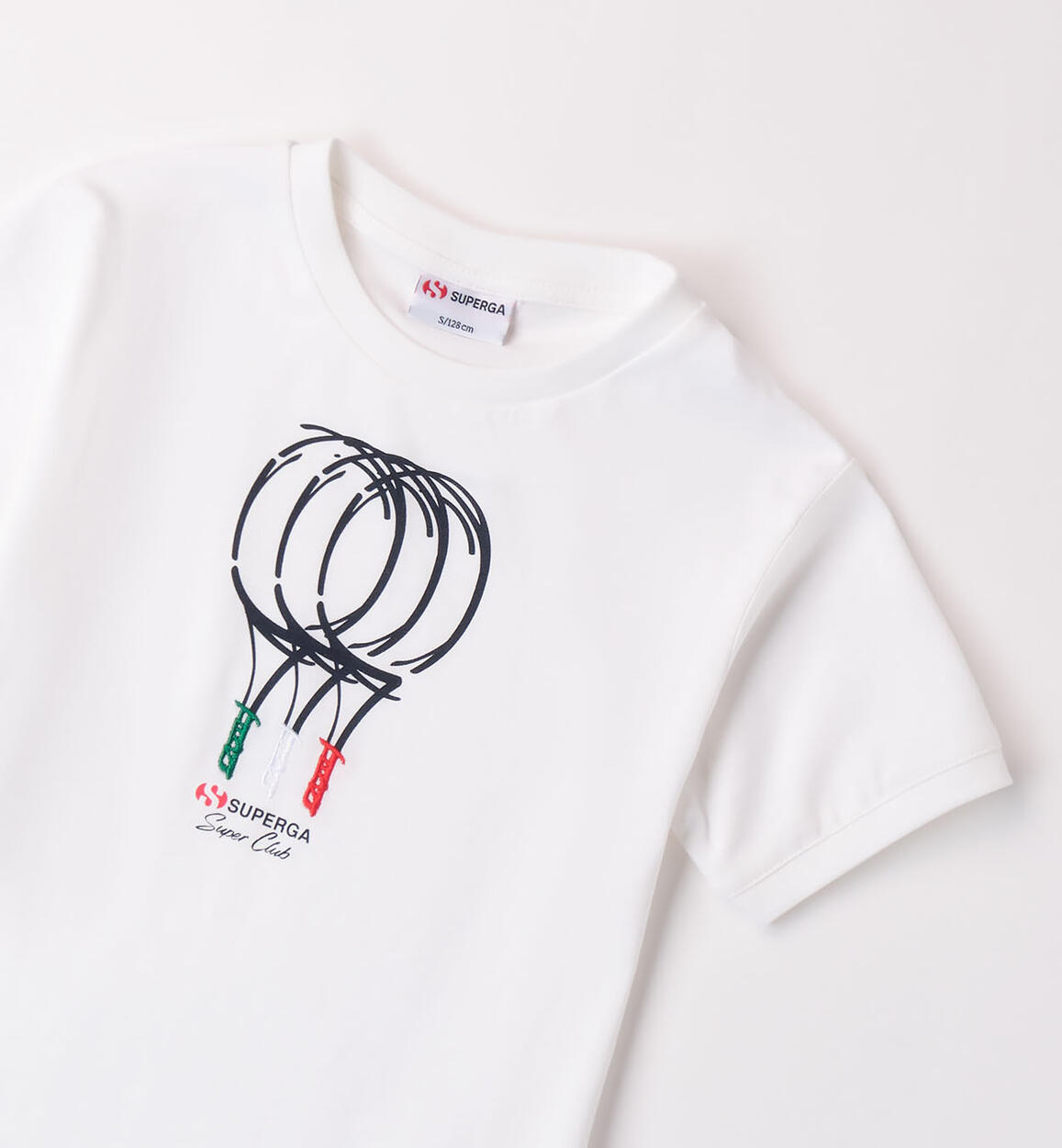 T-shirt Superga per bambino da 3 a 14 anni realizzata in jersey 100% cotone con stampa racchette da tennis