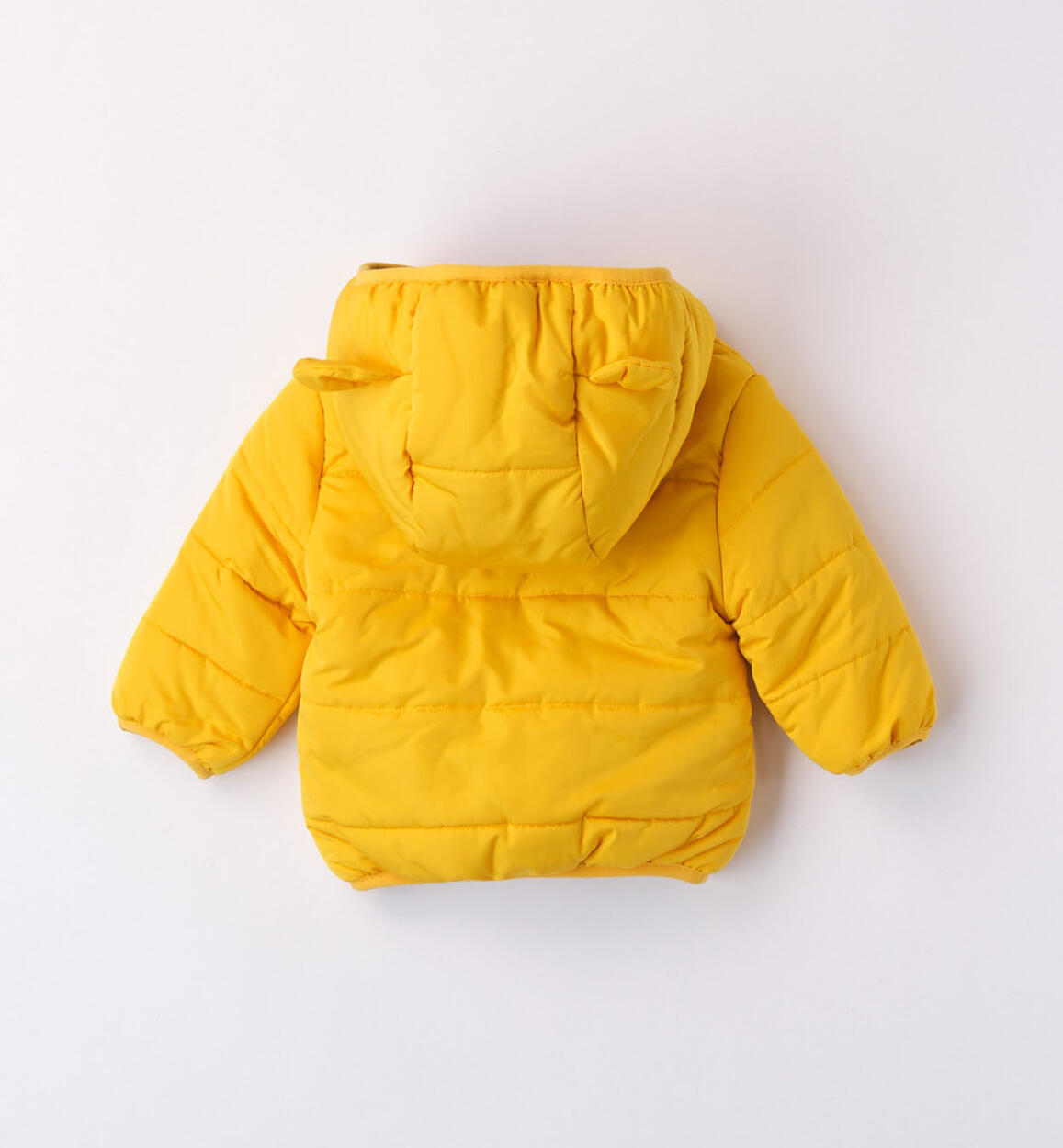 Piumino bimbo iDO foderato in morbido e caldo tessuto, imbottito in ovatta. Apertura con zip e cappuccio con applicazione orecchie. Pesantezza invernale