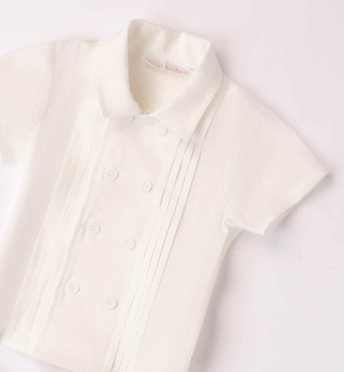 Completo tre pezzi per bimbo Minibanda 1-24 mesi. La camicia manica corta è realizzata in 100% lino e presenta apertura a bottoni ed è impreziosita da pieghe ispirate alle camicie da smoking sul davanti. Cinturina staccabile e pantaloncino a culotte con vita elasticizzata realizzato in lino e viscosa stretch. Scopri tutta la selezione di Completini elegani bimbo Minibanda!